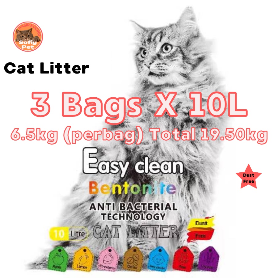 Cat Litter Wangi Pasir Kucing 10l X 3 Bags 19 5kg Anti Bacterial Shopee Malaysia